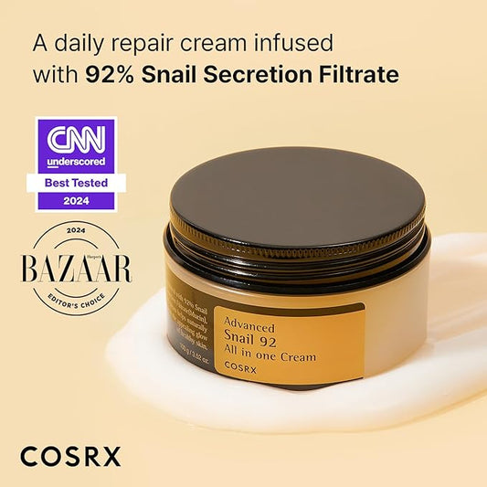 COSRX Snail Mucin 92% Face Moisturizer, 3.52 Oz, Lightweight Moisturing Cream for Soft, Glowy Skin, Korean Skin Care, Korean Moisturizer Face Cream
