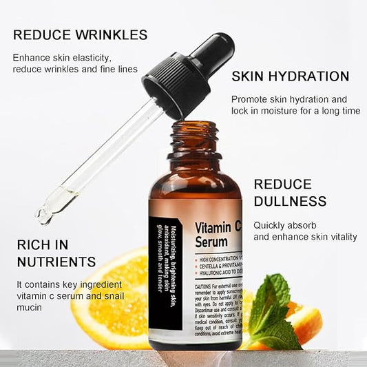 Travel Size Korean Skincare Set, Korean Skin Care Set with Vitamin C Facial Serum, Snail Mucin 92% Moisturizer, Amino Acid White Mud Cleanser, Facial Kit for Women/Teen Hydrating & Plump Skin - 3Pcs