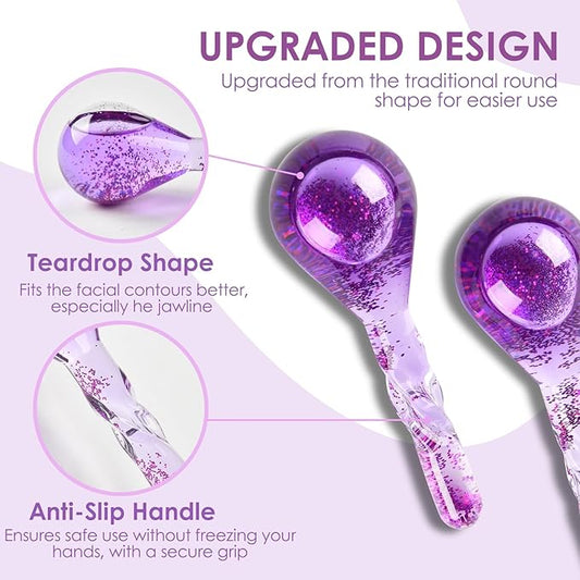 Facial Ice Globes Cryo Stick, Cooling Roller for Face, Neck & Eyes, Beauty Tool to Refresh Skin, Smooth Fine Lines, Reduce Puffiness, Tighten Pores, Skincare Gift Set, Glitter Purple