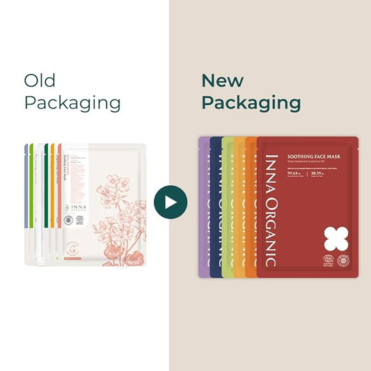 INNA ORGANIC Sheet Mask Set, Anti-Aging & Hydrating, EWG & COSMOS Certified (Pack of 5) | First Pick Discovery Set | Luxury Clean Beauty