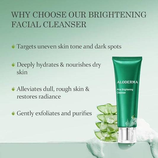Aloderma Essential Aloe Brightening Skin Care Set - 4 Pieces - Gel, Cleanser, Toner, Cream