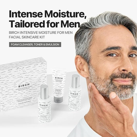 Nature Republic Birch Intensive for Men Skin Care Kit, Face Wash & Moisturizer for Hydrated Skin, Facial Toner (4.05 Fl.Oz) Emulsion (4.05 Fl.Oz) Cleaner (3.38 Fl.Oz), Korean Gift Sets