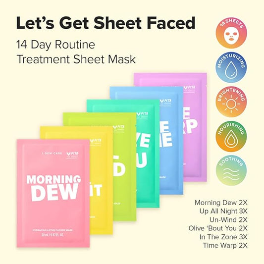 I DEW CARE Glass Skin Face Mask Variety Pack - Let's Get Sheet Faced | For Perfect Care Routine, 2 Week Intense Korean Face Masks Skincare, Makeover with Collagen, Moisturizing, 14 Count