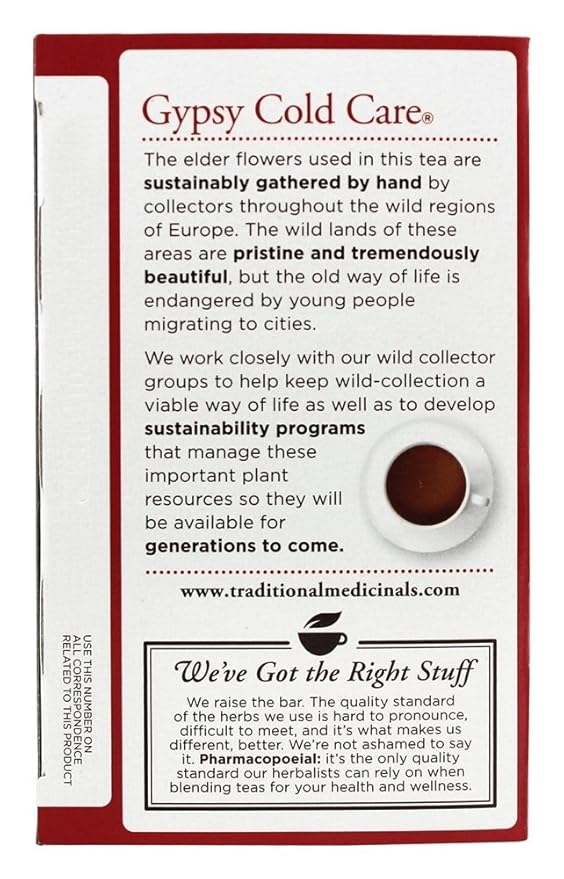 - Traditional Medicinals Gypsy Cold Care Seasonal Teas. New look. Same great tea! Warm & comforting. Since 1974. Created by herbalists. Naturally caffeine free herbal tea. Herbal supplement.