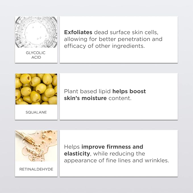 Glytone Night Renewal Cream with 5.5 Free Acid Value Glycolic Acid & Retinaldehyde, Improves Skin Elasticity, Reduce Appearance of Fine Lines & Wrinkles, 1.7 oz.
