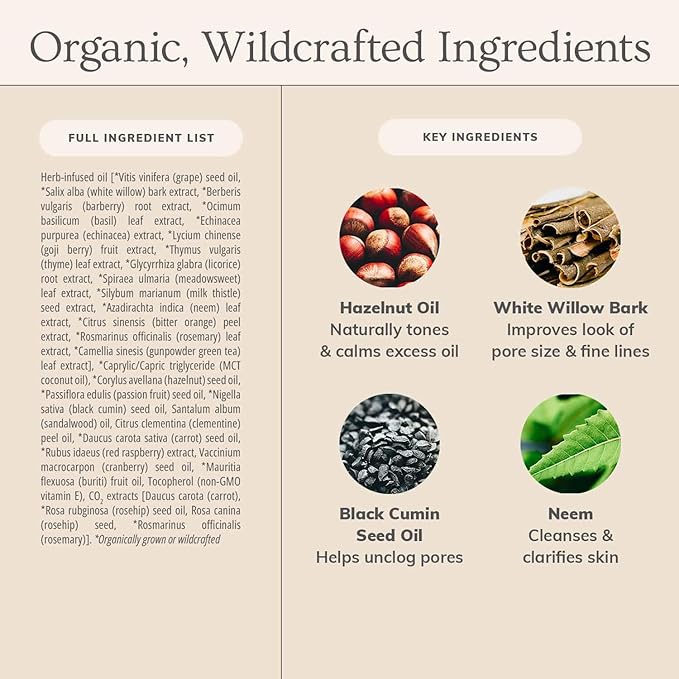 - Key Ingredients: Hazelnut Oil, White Willow Bark, Black Cumin Seed Oil, Neem