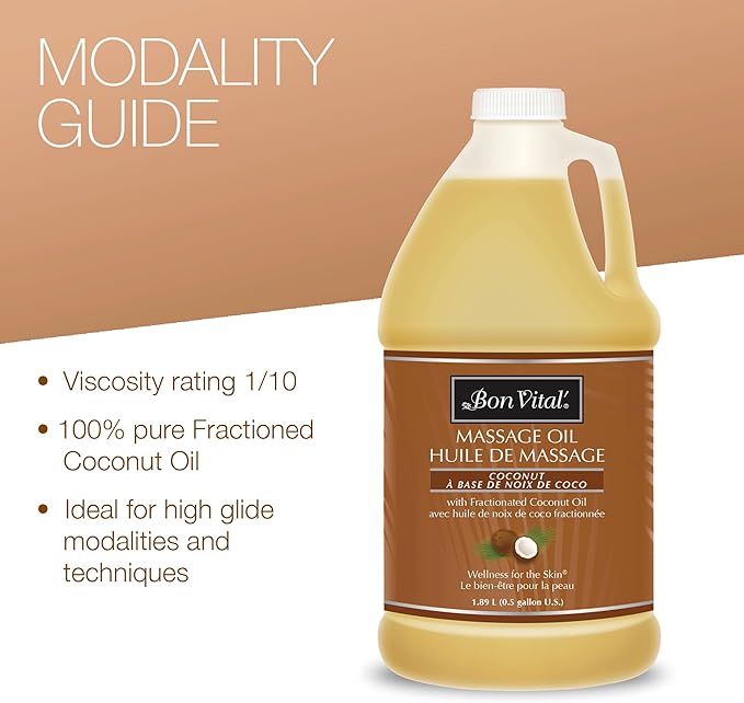 Bon Vital' Coconut Massage Oil with 100% Pure Fractionated Coconut Oil to Repair Dry Skin, Used by Massage Therapists and At-Home Use for Therapeutic Massages and Relaxation, 1 Gal, Label may Vary