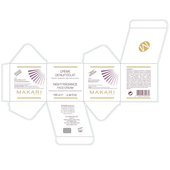 Makari Night Radiance Face Cream, Overnight Face Moisturizer for Women, Reduce Scars, Ideal for Dry, Normal or Maturing Skin Types, Vegan, 3.35 Oz
