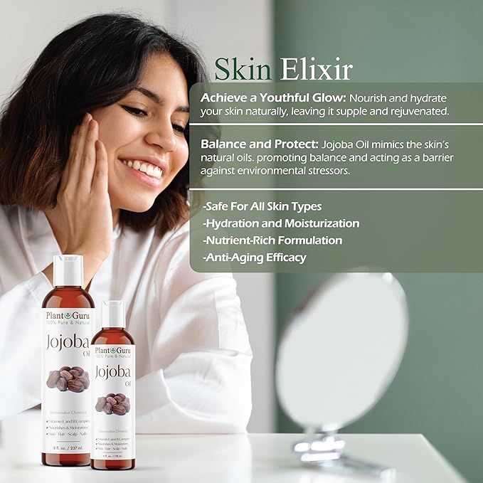 - ✅ SKIN PERFECTION - Immerse your skin in the unparalleled benefits of golden jojoba oil. Rich in antioxidants and nourishing properties, it deeply hydrates, rejuvenates, and balances your complexion. Combat dryness, promote elasticity, and achieve a radiant glow that speaks volumes about the health of your skin.