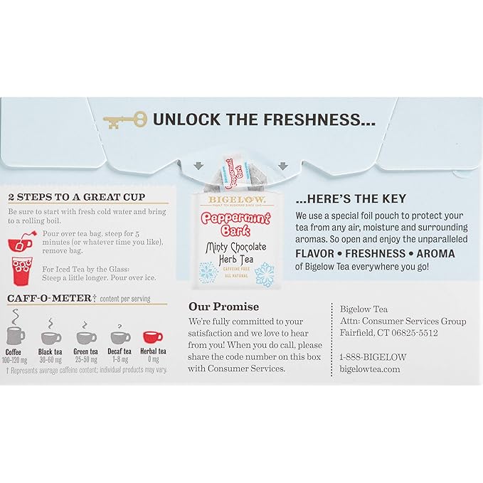 - Individually Wrapped: Bigelow Tea always come individually wrapped in foil pouches for peak flavor, freshness and aroma to enjoy everywhere you go! Gluten-free, calorie-free, and Kosher Certified