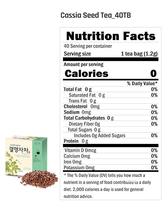 Ssanggye Cassia Seed Tea 1.2g X 40 Tea Bags, Sicklepod Premium Korean Herbal Tea Hot Cold Kyulmyungja Cha 결명자차 Nutty Savory Herb 4 Seasons Made in Korea