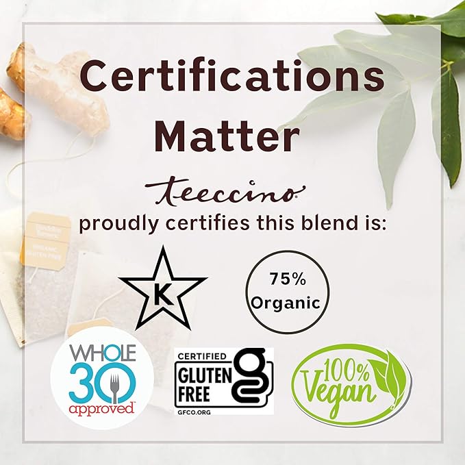 - 3X MORE HERBS - Teeccino’s 6g tea bag holds three times more herbs than standard tea bags which increases its benefits for maximum wellness in your cup. No artificial flavors, chemicals, MSG, or preservatives. Non-GMO, organic herbs.
