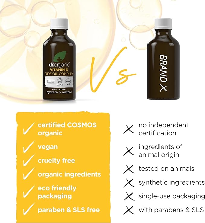Dr. Organic Vitamin E Pure Oil Complex | Nourishes and Protects Skin, Enhances Elasticity, Natural, Certified Organic, Paraben & SLS-Free, 50 mL / 1.7 fl oz