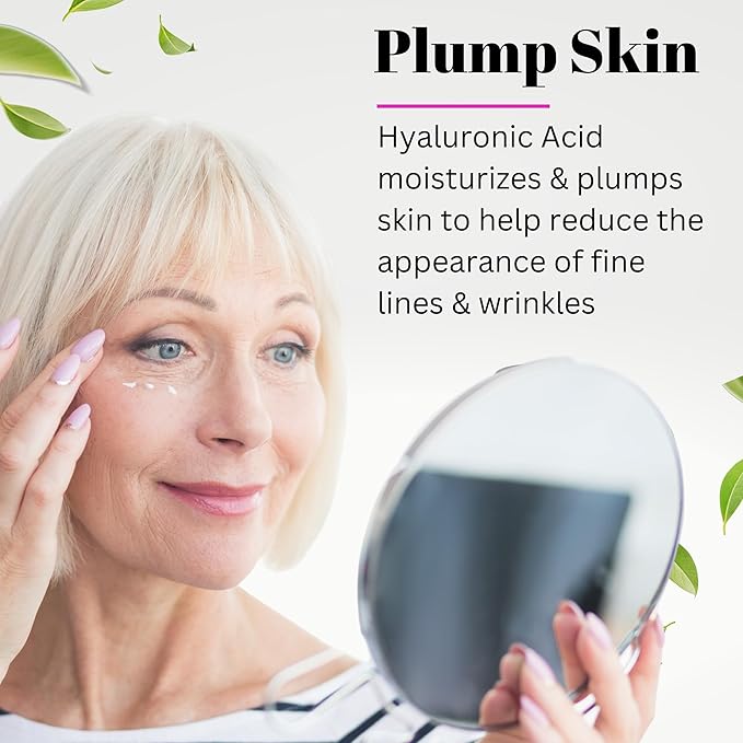 - ♥ PLUMPS SKIN, REDUCES APPEARANCE OF FINE LINES & WRINKLES: Hyaluronic Acid is one of the most effective moisturizes known and plumps skin up to make fine lines and wrinkles less noticeable. Can be used on forehead, mouth area and anywhere else that needs it!