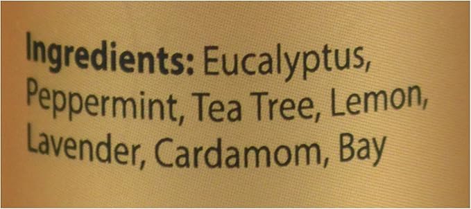 - Ingredients : Eucalyptus, Peppermint, Tea Tree, Lemon, Lavender, Cardamom and Bay. All our oils are Pure, Natural, Undiluted, Non-additives, Non-fillers, Non-synthetics, GMO-free, Best for Aromatherapy & Scents