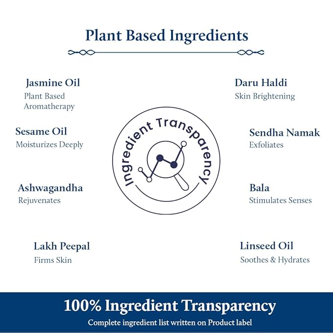 • Great Body Oil for Dry Skin - This body massage oil is a thoughtful potent blend of holistic healing herbs such as Jasmine, Ashwagandha, cold pressed Sesame Oil & Linseed Oil that penetrates into the deeper tissues. It provides intense moisturization and nourishment to the skin which making it appear young and fresh.