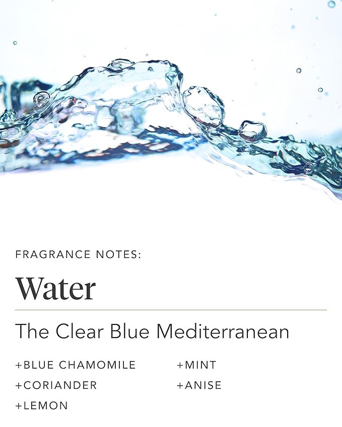 - REFRESHING & RENEWING. As crisp and cool as the Mediterranean Sea, The Water Collection is an invigorating aroma featuring deep base notes of blue chamomile and coriander. Splashes of lemon, mint and anise give this aroma its sparkle.