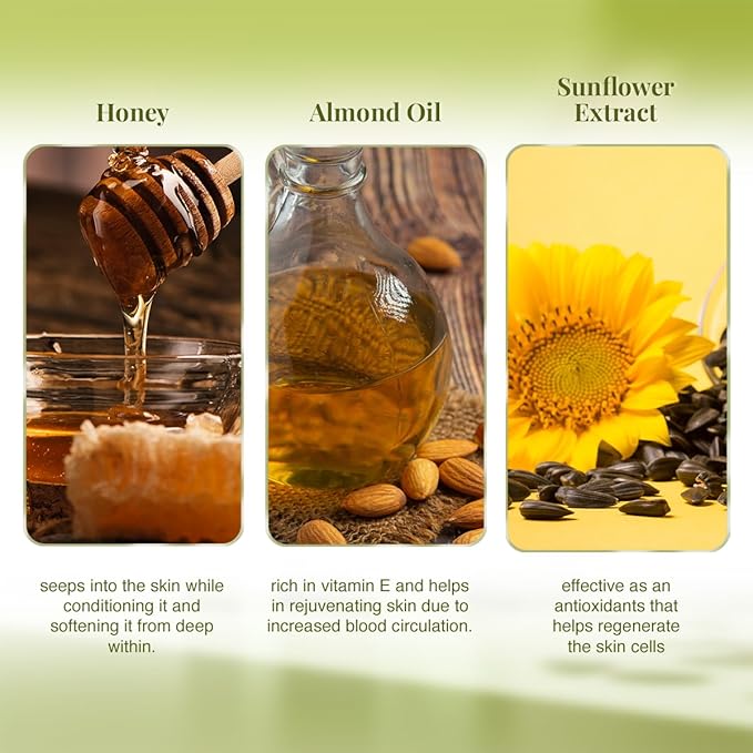 - Enriched with the goodness of almond, honey and sunflower extracts, it nourishes the skin and repels dryness while the kojic infused lotion keeps the skin bright and glowing.