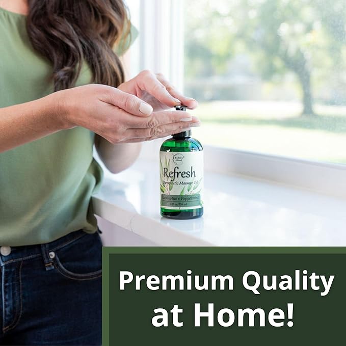 Refresh Massage Oil for Massage Therapy with Eucalyptus & Peppermint Essential Oils - All Natural Sore Muscle Relief. Ideal for Full Body Relaxation – Nut Free Formula 8oz