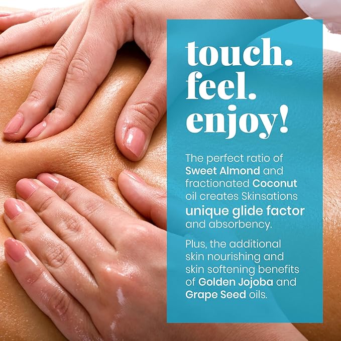 Skinsations - Unscented Massage Oil for Massage Therapy - 16oz | Silky-Soft Blend of Sweet Almond, Fractionated Coconut, Grapeseed and Jojoba Oil | Scented Body Oil, Sore Muscles, Aromatherapy