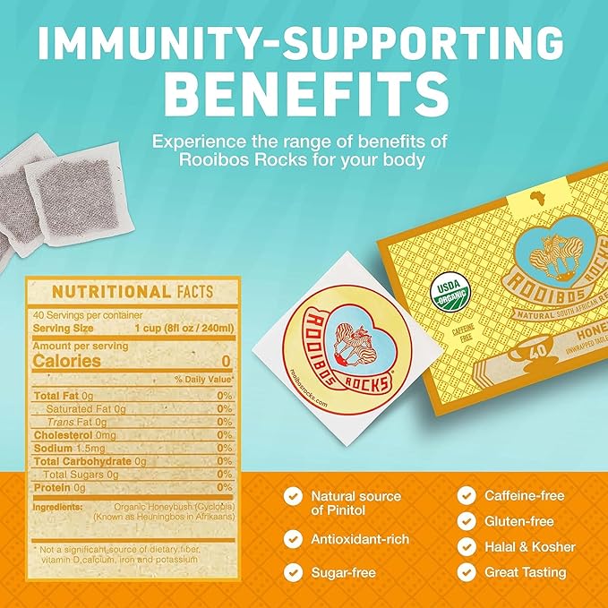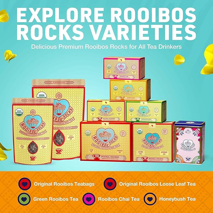 - ๐งก PREMIUM ORGANIC TEA - We give our assurance that Rooibos Rocks Honeybush Tea is of the highest quality. Each of our biodegradable decaf tea bags contains pure organic honeybush tea leaves from South Africa and nothing else.