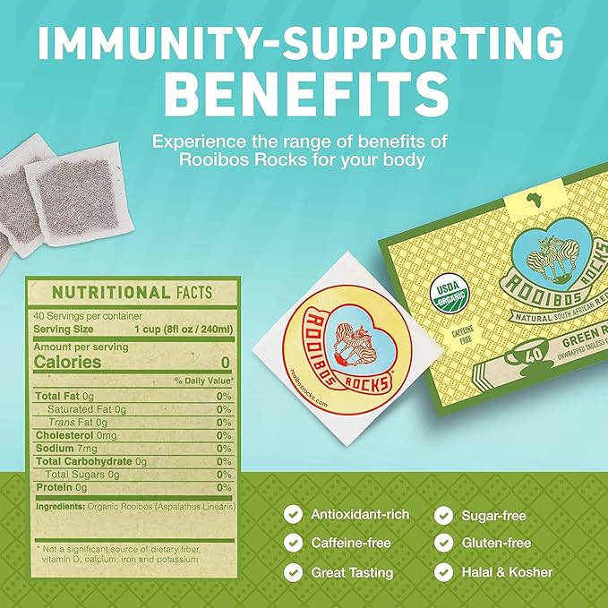 Organic Green Rooibos Tea Bags - 40 Rooibos Green Tea Bags – Naturally Sweet Herbal Tea Rich in Antioxidants – Kid & Pregnancy Safe Tea - USDA Organic Rooibos Tea, Lighter-Bodied Caffeine Free Tea