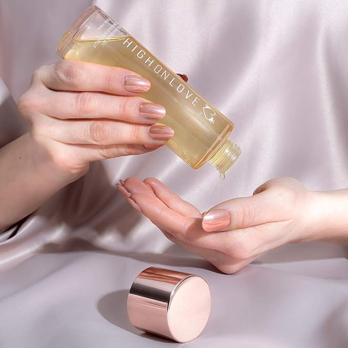 HIGHONLOVE Natural Body Oil with Hemp Seed, Grape Seed, & Vitamin E Oil - Moisturizing Body Glow with a Non-Greasy, Glowy Finish (120 ml) (Lychee Martini)