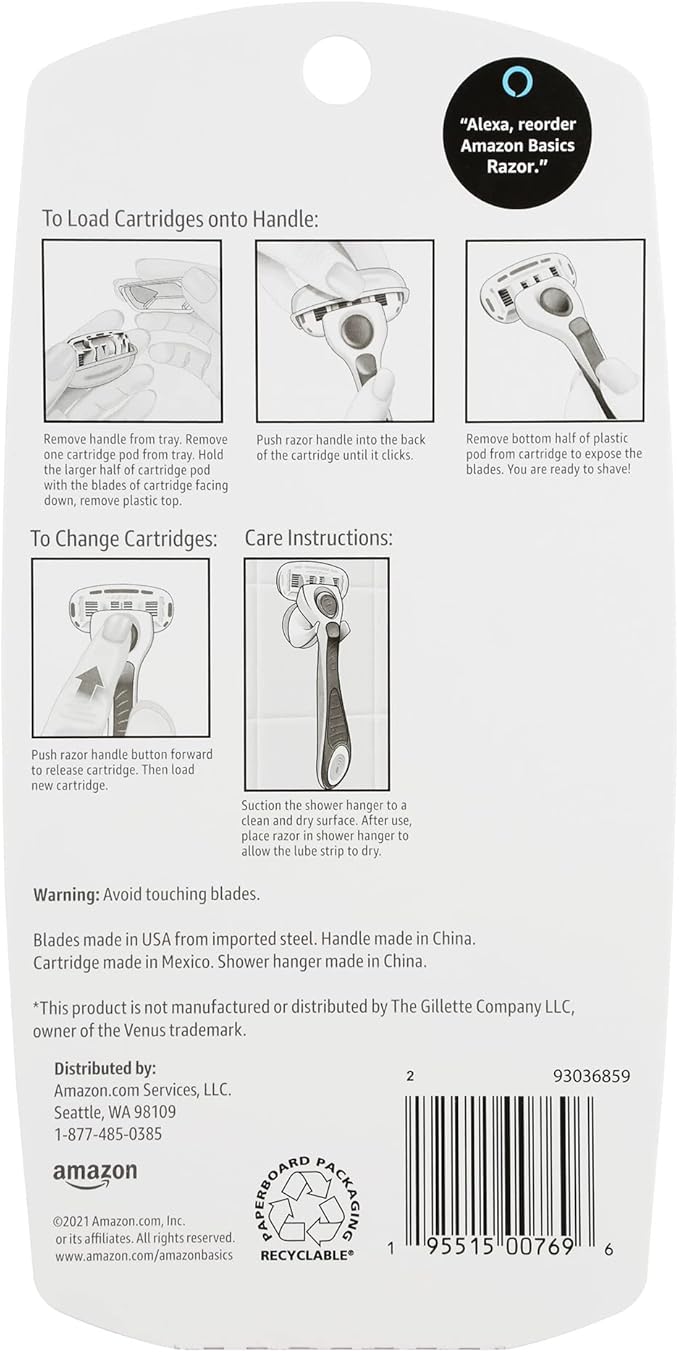 - Alexa voice shopping enabled: to place your next order, just say, “Alexa, reorder Amazon Basics Razor”