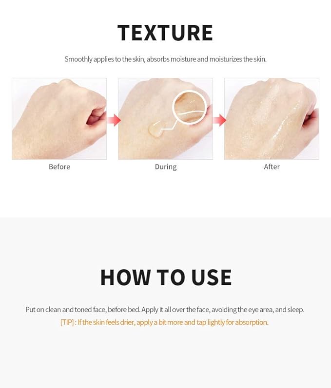- SLEEPING PACK: Skin is the most active at night, during sleep. It is the time when the body - including your skin - recharges. This sleeping pack is designed to supply your skin with the nutrients needed to get a maximum recharge.