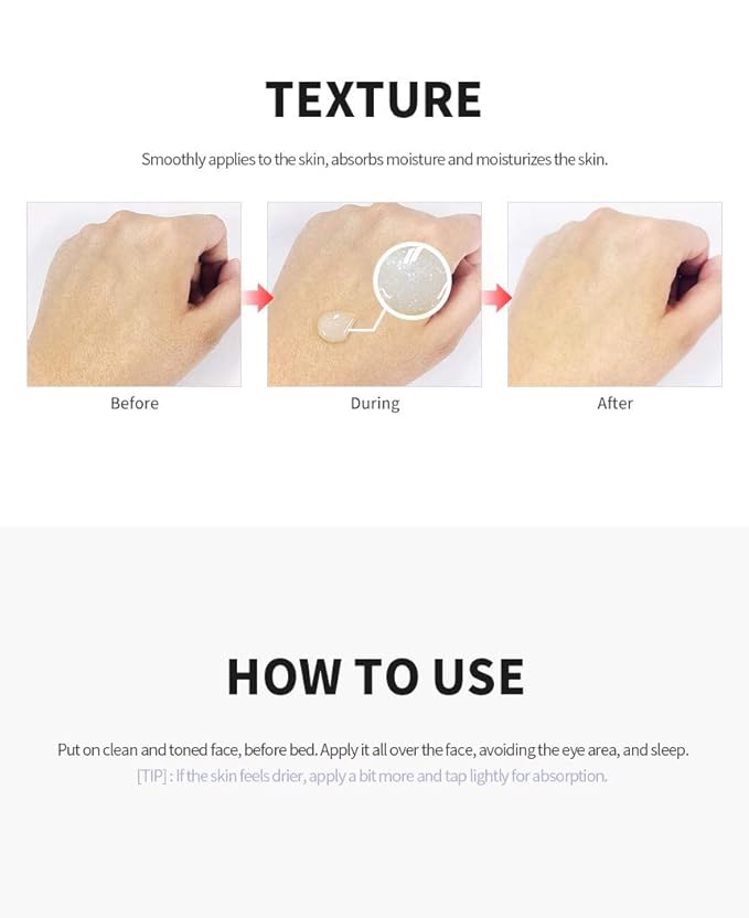 - SLEEPING PACK: Skin is the most active at night, during sleep. It is the time when the body - including your skin - recharges. This sleeping pack is designed to supply your skin with the nutrients needed to get a maximum recharge.