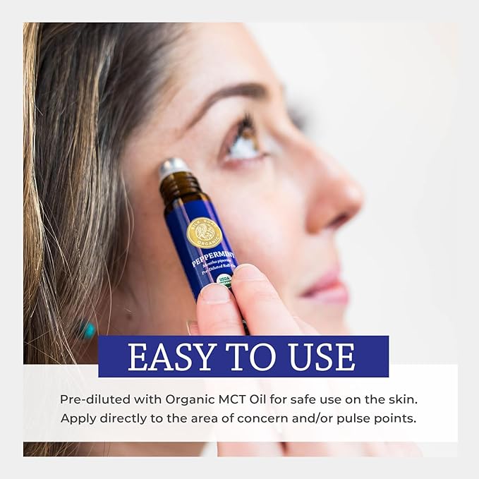 - PURE, NATURAL & Non-genetically modified: Our aromatherapy roll-on is made from USDA Certified Organic Peppermint essential oil. When applied to the skin, the menthol properties provide a relaxing, cooling sensation.