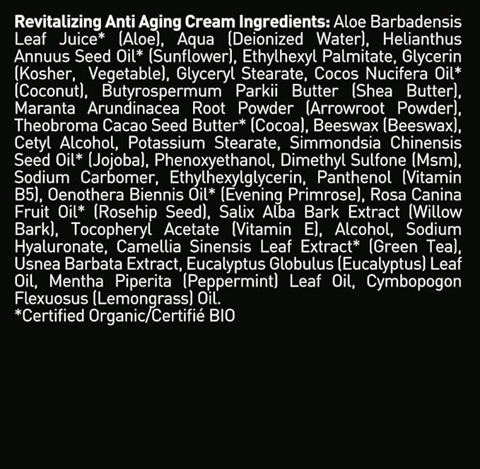 - Key Ingredients: All Natural & Organic ingredients, including aloe, Vitamin C, DMAE, MSM, hyaluronic acid and green tea.