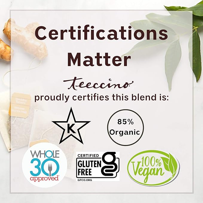 - 3X MORE HERBS - Teeccino’s 6g tea bag holds three times more herbs than standard tea bags which increases its benefits for maximum wellness in your cup. No artificial flavors, chemicals, MSG, or preservatives. Non-GMO, organic herbs.
