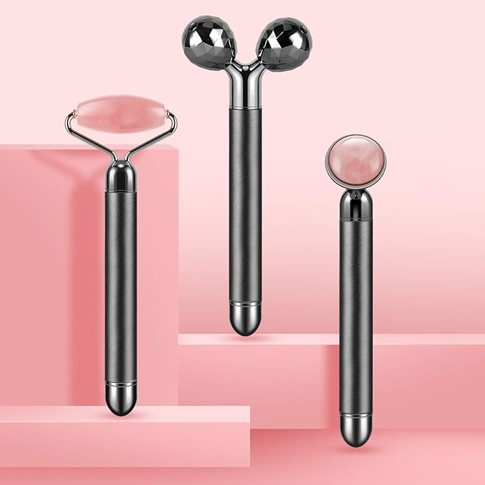 3-IN-1 Electric Jade Roller 3D Roller Facial Roller & Face Massager,Black