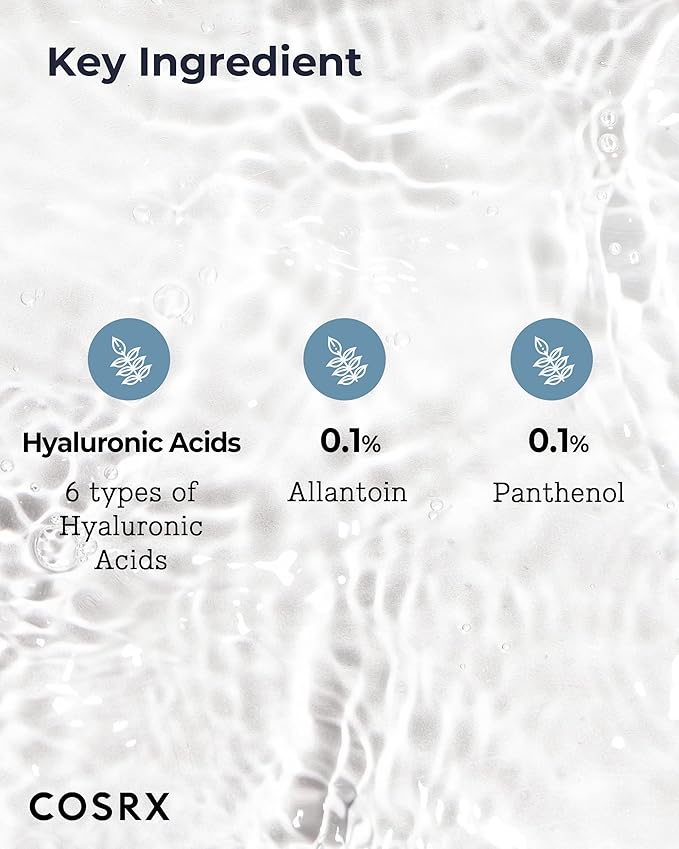 - Key Ingredient: 6 types of Hyaluronic Acids, 0.1% Allantoin, 0.1% Panthenol (Vitamin B5).