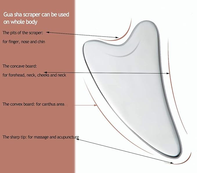 - π Multipurpose gua sha scraper: The gua sha scraper is used for facial massage, which can be used on the whole body, help absorb skincare products like serums, oils, lotions, and moisturizers into cells for lifting and tighten the face, relieving sniff neck and frozen back, making it your face look slimmer by shrinking swollen facial tissues and pores