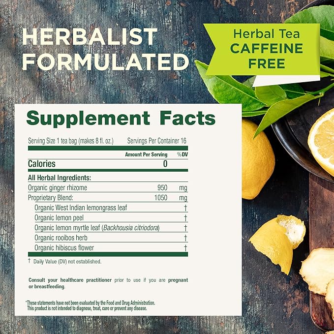 Traditional Medicinals Organic Lemon Ginger Tea, 1.13 Oz, 16 Count