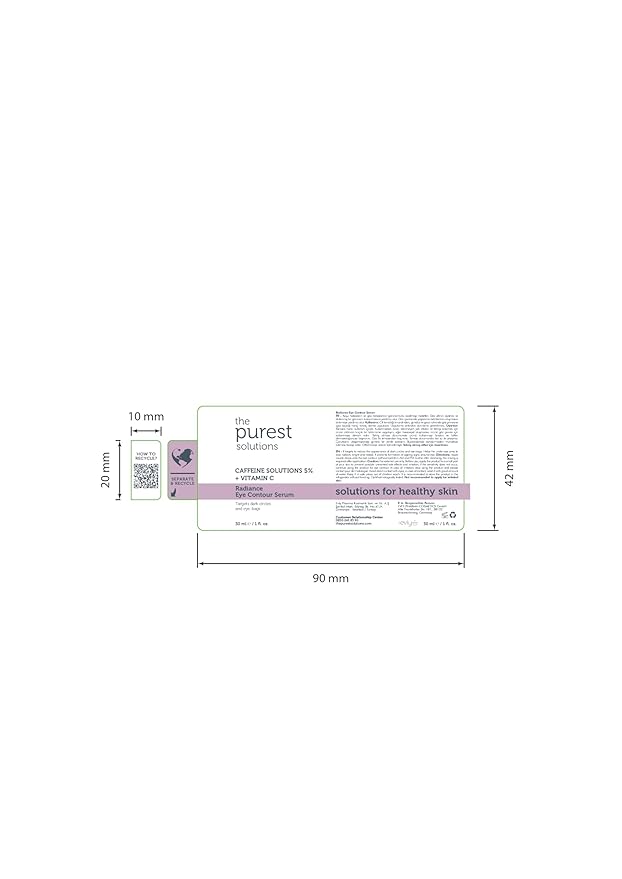 The Purest Solutions Radiance Eye Contour Serum (Caffeine Solutions 5% + Vitamin C) - Bright & Rested Appearance - Skin Tone Difference Reduction - Under-Eye Bag Care - Vegan | Cruelty Free (1 fl. oz)