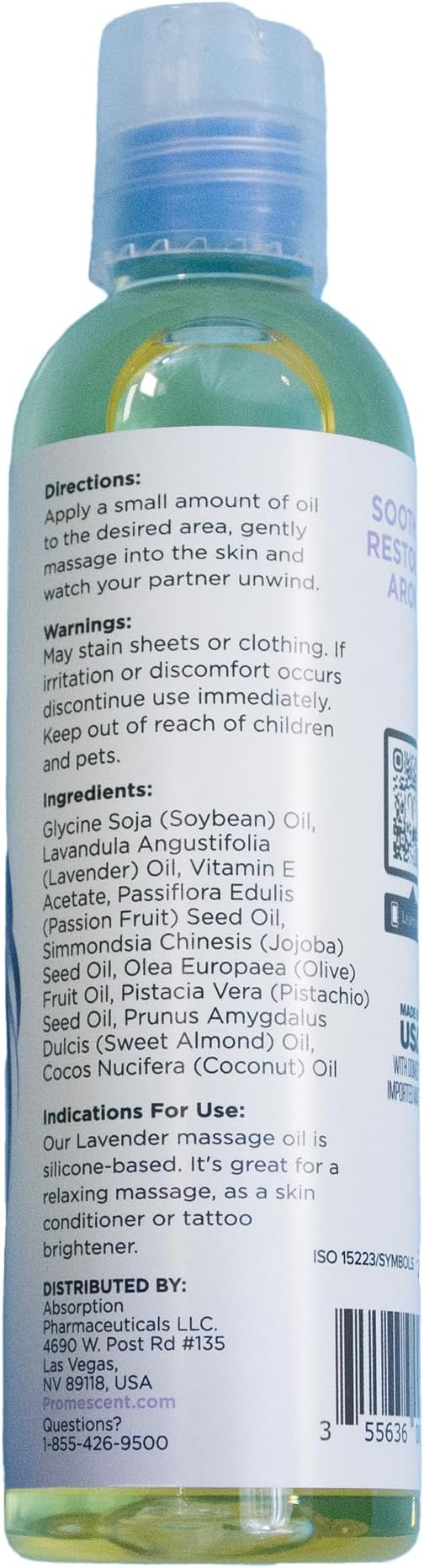 Promescent Lavender Massage Oil for Massage Therapy, Massage Oils for Date Night, Premium Lavender Body Oil for Men & Women to Relieve Stress & Sore Muscles, Essential Oils for Skin (4 oz)