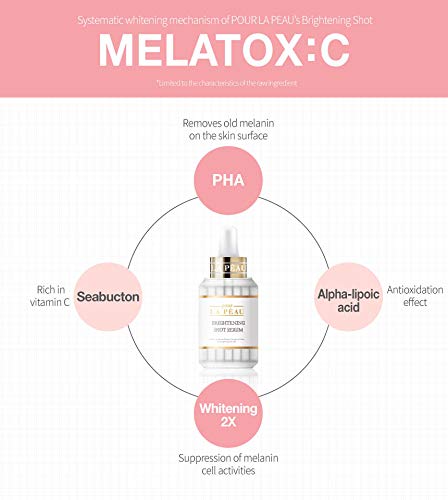 - Product Benefits : The POUR LA PEAU Brightening Shot Serum is a luxurious concoction of MelaTox:C, Symwhite377, Niacinamide, and Luisant Mela Xd designed to envelop your skin in luminous beauty. This gem from the heart of Korean skincare delivers deep hydration, evens out skin tone, and provides a youthful glow. The POUR LA PEAU Brightening Shot Serum is a luxurious concoction of MelaTox:C, Symwhite377, Niacinamide, and Luisant Mela Xd designed to envelop your skin in luminous beauty. This gem from the heart of Korean s⦠See more