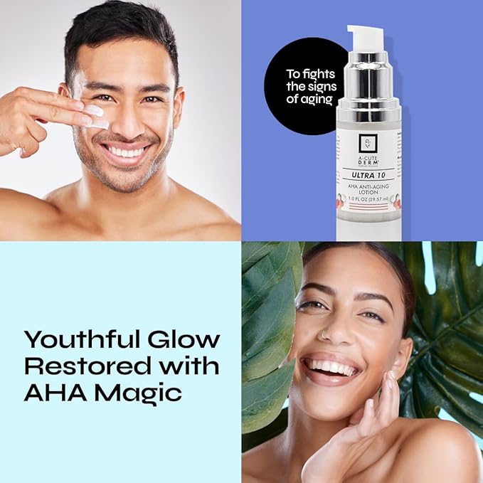 A-Cute Derm Ultra 10 AHA Anti-Aging Lotion for Exfoliation Simple and Effective for Face and Body (1 OZ)