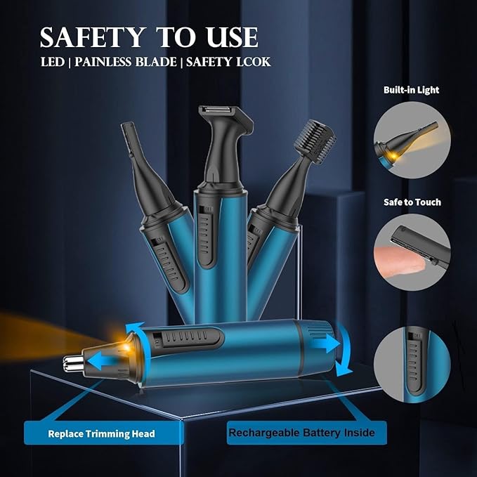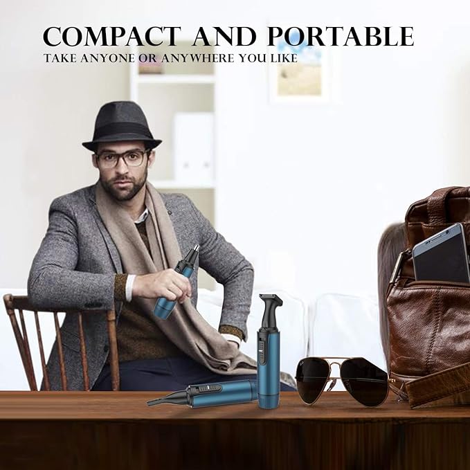 - 【COMPACT AND PORTABLE】: This men's grooming kit also can be used as nostril hair trimmer, ear trimmer, facial hair trimmer and body hair trimmer is with the pocket size design, it's room-saving and lightweight. The nose hair trimmer rechargeable is whenever and wherever possible to meet your requirements.