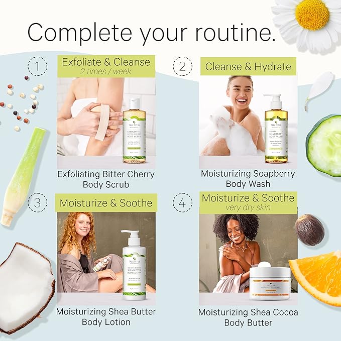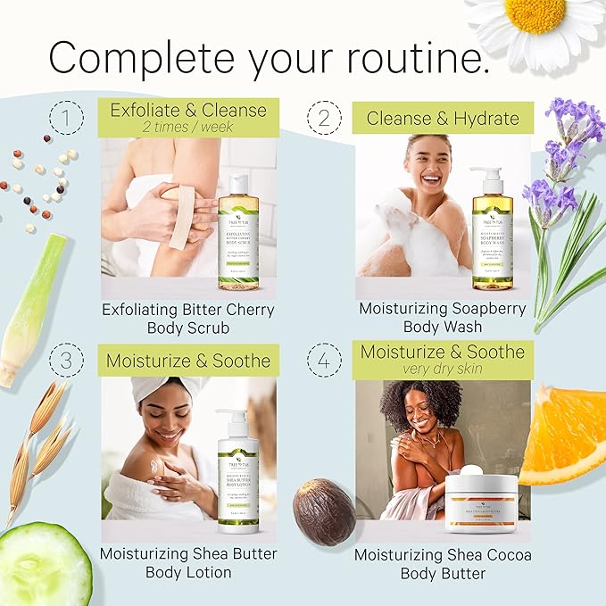 - š± FRAGRANCE FREE LOTION FOR DRY SKIN: Unlike other organic body lotion, our body lotion balances your skin's pH thanks to the amazing Soapberry! Experts agree that when you balance your skinās pH instead of coating it in oils, it naturally balances its own moisture. We simply added our Moisturizing Blend (Shea Butter, Cocoa Butter, Oatmeal, Chamomile, Aloe Vera) to create a body lotion that nourishes and calms dry skin, leaving moisture without residue!