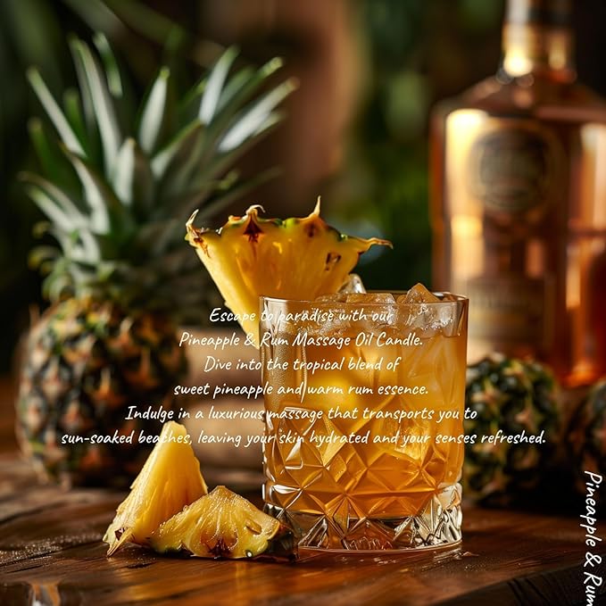 MELONY Massage Oil Candle for Pure Relaxation- 8.1 oz- Moisturizing Essential Oil Body Massage Candle for Home Spa- Amazing Gift for Women & Men (Pineapple Rum)