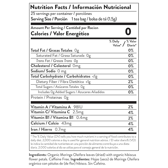 Miracle Tree - Organic Moringa Superfood Tea, 25 Individually Sealed Tea Bags, Hibiscus (Keto, Detox, Energy & Immunity Booster, Vegan, Gluten-Free, Organic, Non-GMO, Caffeine-Free)