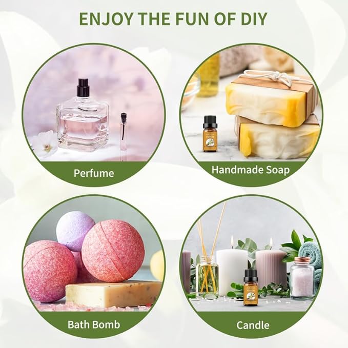 - Widely Used: Suitable for diffuser, cleaning, massage, perfume, home, bedroom, living room, bathroom, office, aromatherapy, outdoor, soap or candle making, yoga studio, car and spa, etc.