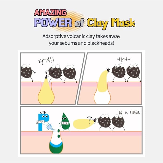 - ✔Removes sebum and blackheads without irritation : Volcanic ash ingredients such as kaolin and bentonite absorb wastes without irritation to the skin.