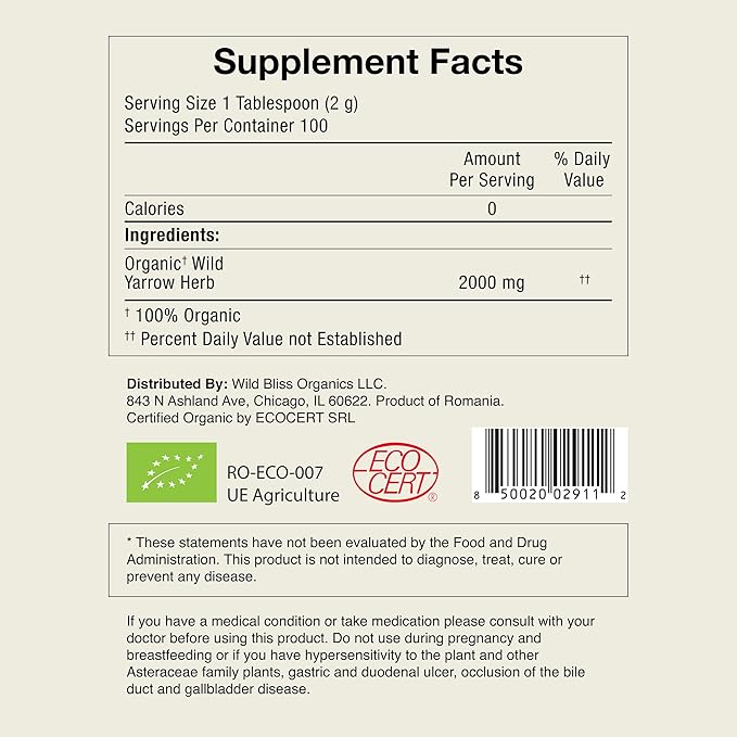 - PURE ORGANIC YARROW FLOWER; Avoid harmful agricultural chemicals in your tea; Wild Bliss tea is free from highly processed 'natural' flavors, additives, or preservatives