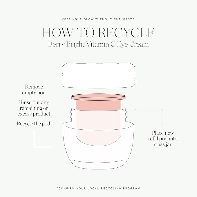 - Make It a Routine. Gently massage a small amount around the eye area using your ring finger. When you’ve finished the eye cream, reduce waste by recycling the empty pod and replenishing the glass jar with a new refill pod.
