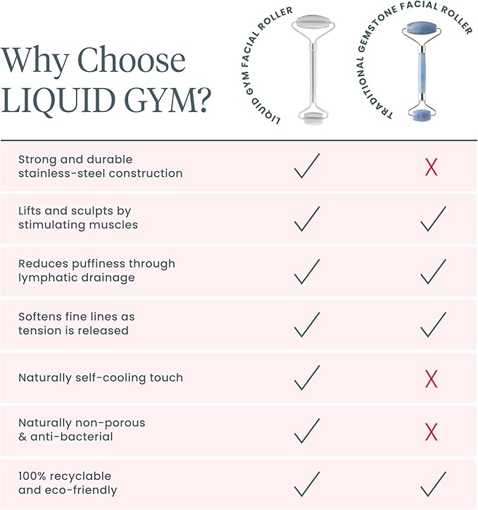 - š¦š§šš šØššš§š š šØš¦šššš¦ šš”š šš¢š”š§š¢šØš„ š¬š¢šØ? š¦ššš” - The LIQUID GYM Roller also helps to increase blood circulation, which can give your skin a fresh and bright appearance. By stimulating the muscles in your face, our face roller for wrinkles and lifting can help to firm and contour your skin. This face sculpting tool is an excellent choice for those who want to achieve a more youthful and lifted appearance.